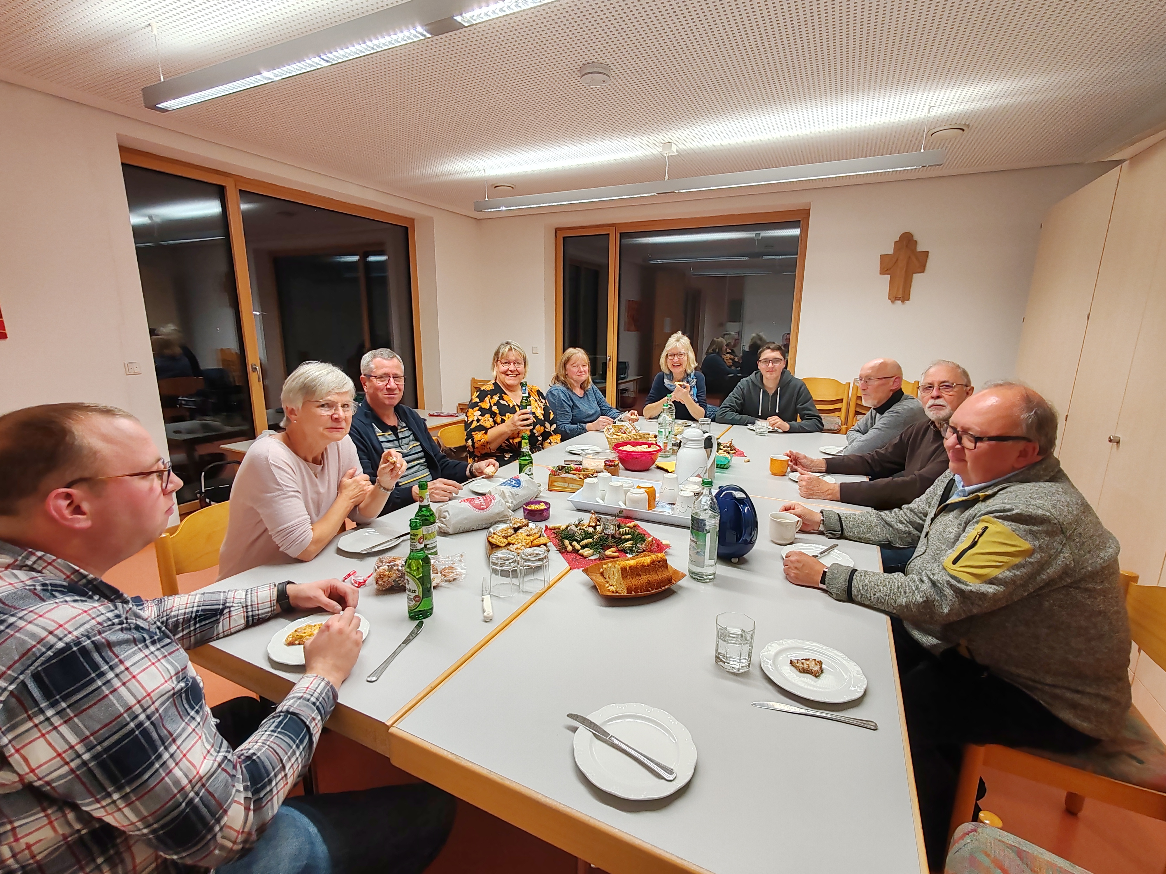 Dass sich diese Disziplin und die intensive Vorbereitung gelohnt haben, konnten wir bei unseren verschiedenen Auftritten erleben. Ob bei der stimmungsvollen Atmosphäre auf dem Adventsmarkt oder während der feierlichen Gottesdienste an den Weihnachtstagen – es ist für uns immer wieder ein Geschenk, die Botschaft des Festes musikalisch in die Gemeinde zu tragen und die Freude der Zuhörer zu spüren. Neben all der „Arbeit“ kam dabei das Vergnügen nie zu kurz, denn für unsere besonderen Anlässe haben wir die Prioritäten auch gerne mal verschoben: Sowohl für eine doppelte Geburtstagsfeier als auch für unsere traditionelle Adventsfeier wurde die Probe kurzerhand verkürzt. So blieb im Anschluss viel Zeit, um lange und gemütlich beisammenzusitzen, gemeinsam zu essen und die Gemeinschaft zu genießen.